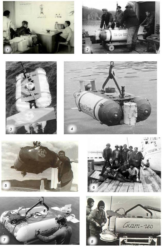 7 - 8. АНПА «Скат-гео» и его создатели: Н.И. Рылов, Ю.Г. Молоков. 1978 г.
