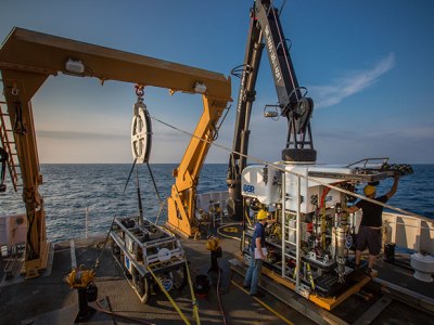 НИС Okeanos Explorer участвует в экспедиции Northeast U.S. Canyons 2013, проходящей в районе подводных каньонов северо-восточного побережья США. Для изучения биологических и геологических особенностей испытывается новый глубоководный подводный аппарат Deep Discoverer (ROV D2) с рабочей глубиной 6000м. В ходе первой части экспедиции за 16 дней было выполнено 16 погружений на глубины от 500 до 2200м, детально обследованы 4 каньона и собрано множество образцов морского бентоса в окрестностях горы Mytilus Seamount. Кроме ROV D2 так же применяется платформа Seirios Camera Sled.