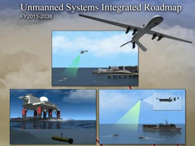 Опубликован программный документ Unmanned Systems Integrated Roadmap FY2013-2038 в котором детально описывается растущая необходимость беспилотных и робототехнических систем для оборонных задач в современном мире. Наряду с уже получившими широкую известность авиационными и наземными комплексами значительное внимание уделяется необитаемым подводным аппаратам и безэкипажным плавсредствам, возможности которых существенно продвинулись за пару лет с момента опубликования предыдущей редакции Unmanned Systems Integrated Roadmap FY2011-2036 Вопросы применения безэкипажных автоматизированных плавсредств конкретезируются в свежей работе корпорации RAND U.S. Navy Employment Options for Unmanned Surface Vehicles которая так же находится в открытом доступе.