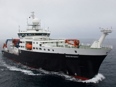 Новейшее исследовательское судно RRS Discovery отправилось в рейс DY007 во время которого, в том числе, будет произведено докование в испанском порту Виго и устранение неполадок пропульсивного комплекса, выявленных при ходовых испытаниях, стартовавших в июле прошлого года. Контракт на постройку судна (75 млн. фунтов стерлингов) был заключен в марте 2010г., закладка состоялась в апреле. Первоначально, предполагалось, что уже в ноябре прошлого года оно будет задействовано в научной экспедиции, однако первый полноценный рейс планируется в марте. RRS Discovery, четвертое судно с таким именем, причем предидушее прослужило 50 лет.(1962-2012гг.)