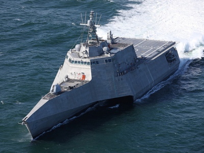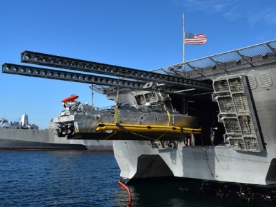 Корабль прибрежной зоны USS Independence (LCS 2) был задействован в испытаниях систем модульного вооружения, создаваемых по программе Mission Module Program. Тестировались параметры интеграции безэкипажного катера Textron UISS (Unmanned Influence Sweep System) и АНПА General Dynamics Knifefish (Bluefin-21). Строительство кораблей LCS началось в 2005 г., киль USS Independence был заложен в январе 2006 г. На сегодня введено в строй 15 единиц двух типов (Freedom и Independence). В феврале начал службу USS Tulsa LCS 16, тип Independence. Верфь Austal (Mobile, Alabama) вначале была субподрядчиком General Dynamics, но затем в 2010 г. сама получила $3,5 млрд на постройку десяти кораблей этого типа. Противоминный модуль MCM MP (Мine Сountermeasures Мission Рackage), включающий, в том числе, безэкипажные катера и автономные подводные аппараты, стоит порядка $100 млн. Текущие планы подразумевают постройку 34 кораблей обоих типов, хотя раньше собирались сделать 60.