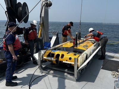 NOAA на своем судне R/V Laurentian (24 м) проводит недельную экспедицию в заповеднике Wisconsin Shipwreck Coast National Sanctuary на озере Мичиган. Целью работ является обследование 15 затонувших судов на глубинах 40 – 150 м, включая фотосъемки с высоким разрешением для создания детализированных 3D-моделей. Для этого компания Hibbard Inshore предоставила АНПА типа Saab Sabertooth, который оснащен лазерным сканером Voyis Insight Pro и фотокамерой Observer. Кроме того, на борту находится вспомогательный ТНПА типа Seaeye Falcon.