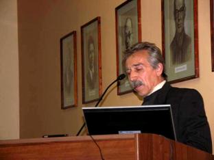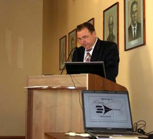С докладом на тему "Применение подводных роботов в сетецентрических войнах" выступает зам. директра по науке ИПМТ ДВО РАН д.т.н. Г.Ю.Илларионов Генеральный конструктор ОАО Аккумуляторная компания "Ригель" (Санкт-Петербург" А.В.Краснобрыжий выступает с докладом "Разработка литий-ионных аккумуляторов и батарей с высоким и удельными характеристиками для применения в морских объектах различного назначения"